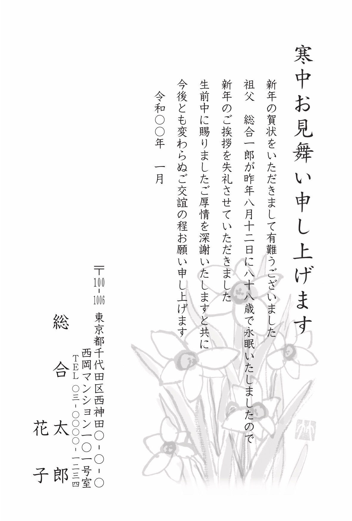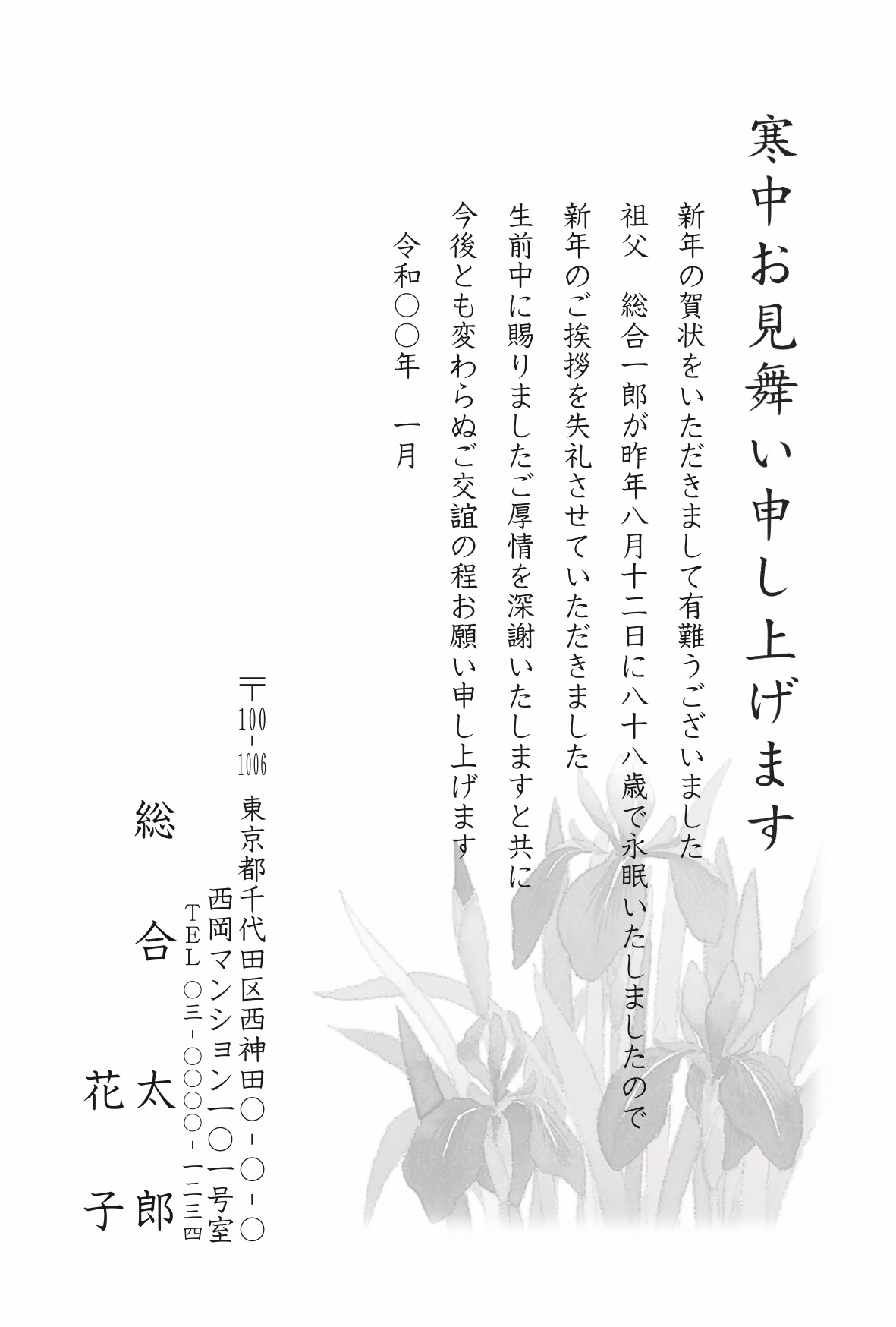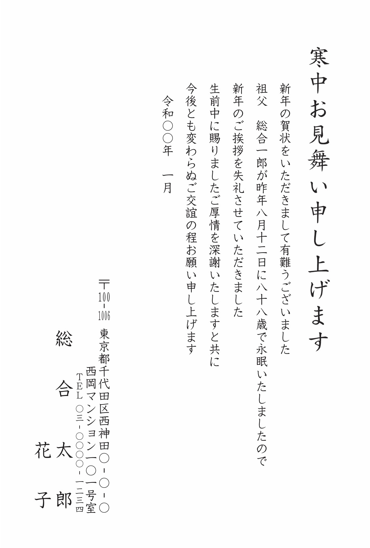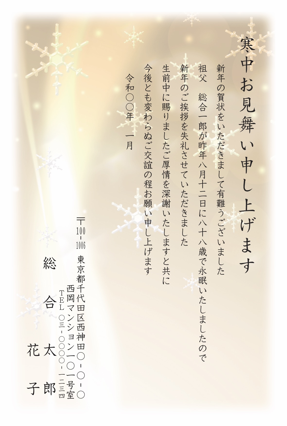いただいた年賀状に対するお礼と、喪中のために欠礼したことを伝える寒中見舞いです。
