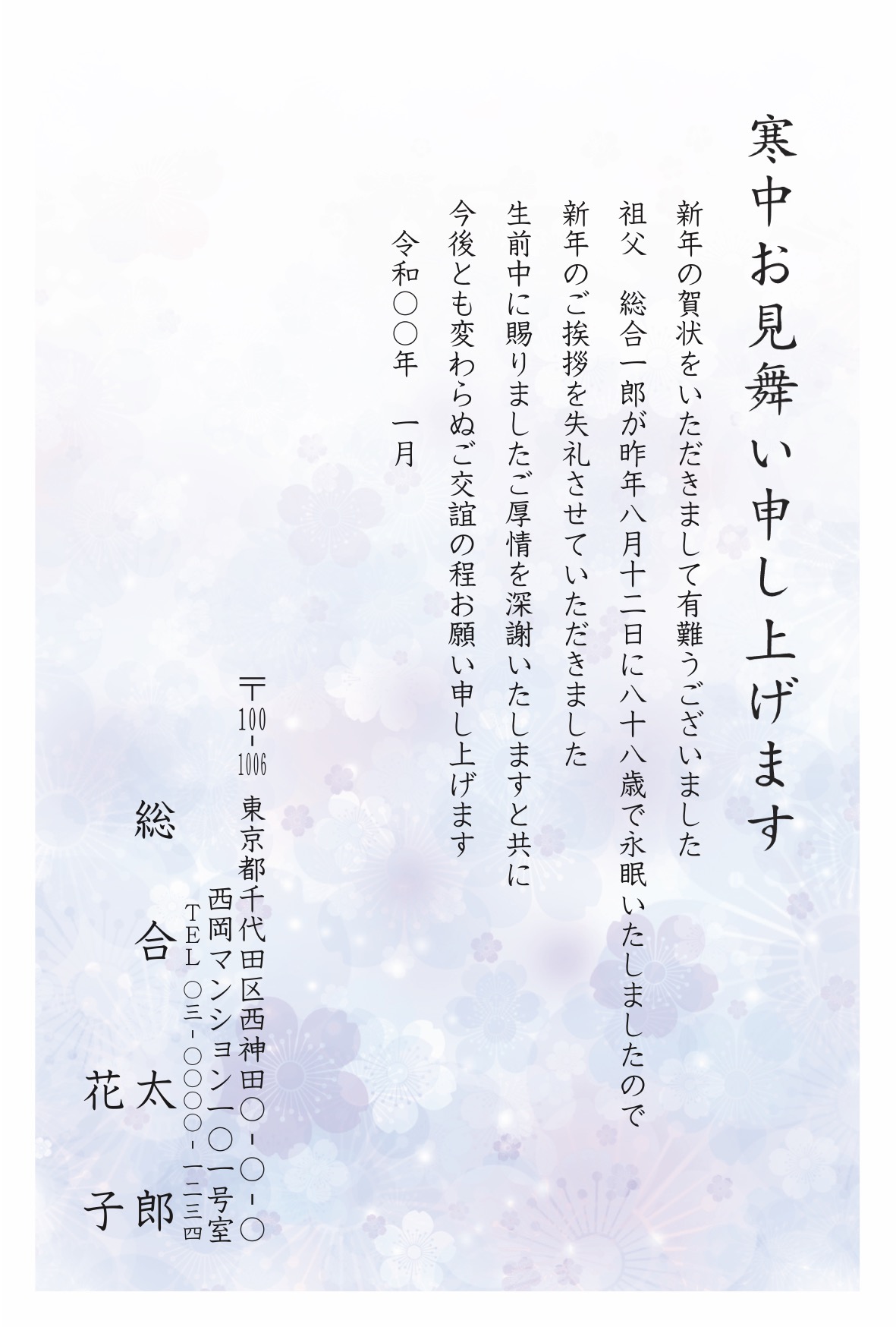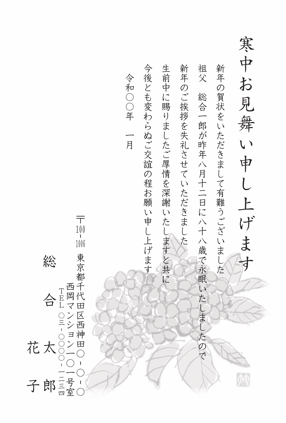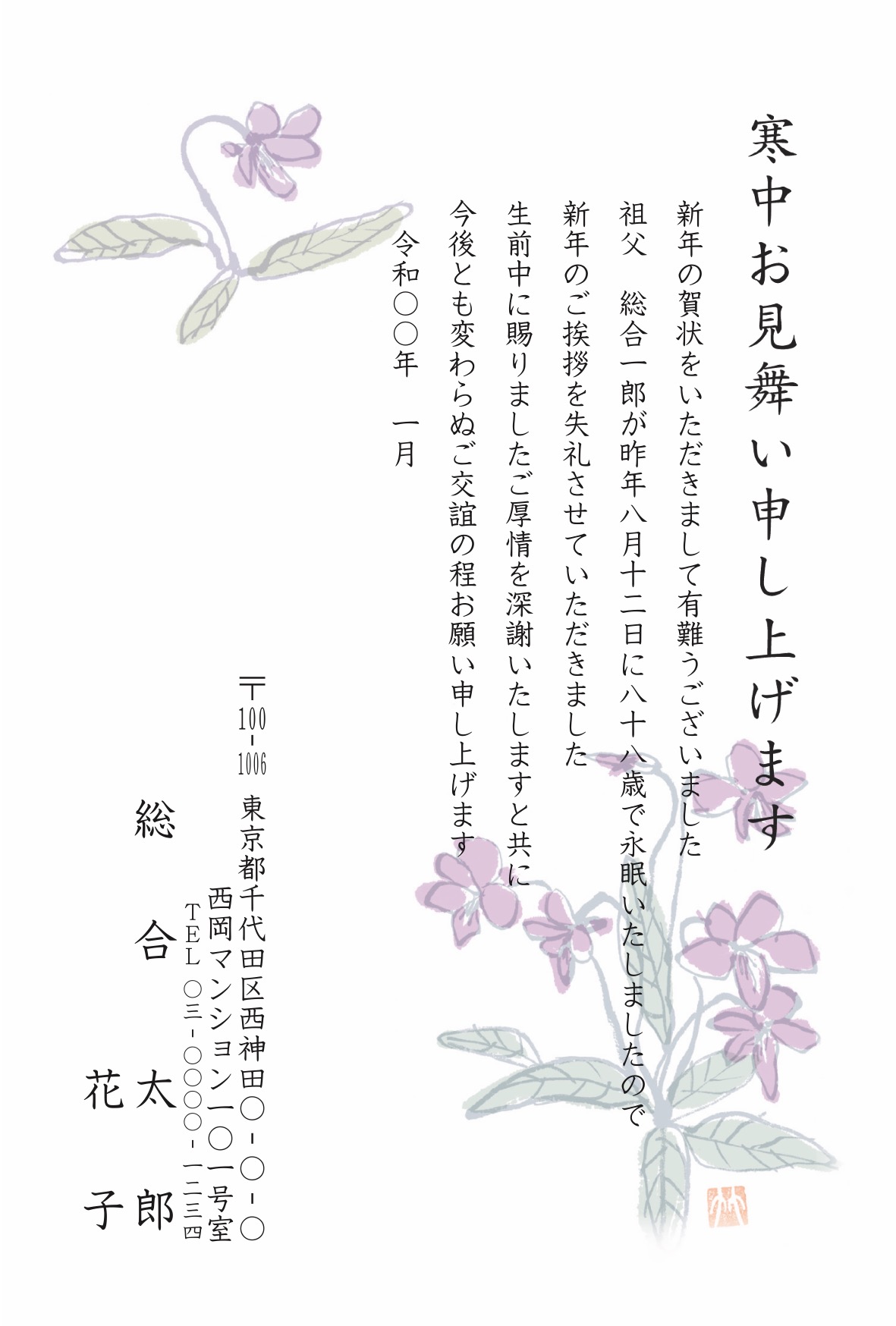 いただいた年賀状に対するお礼と、喪中のために欠礼したことを伝える寒中見舞いです。