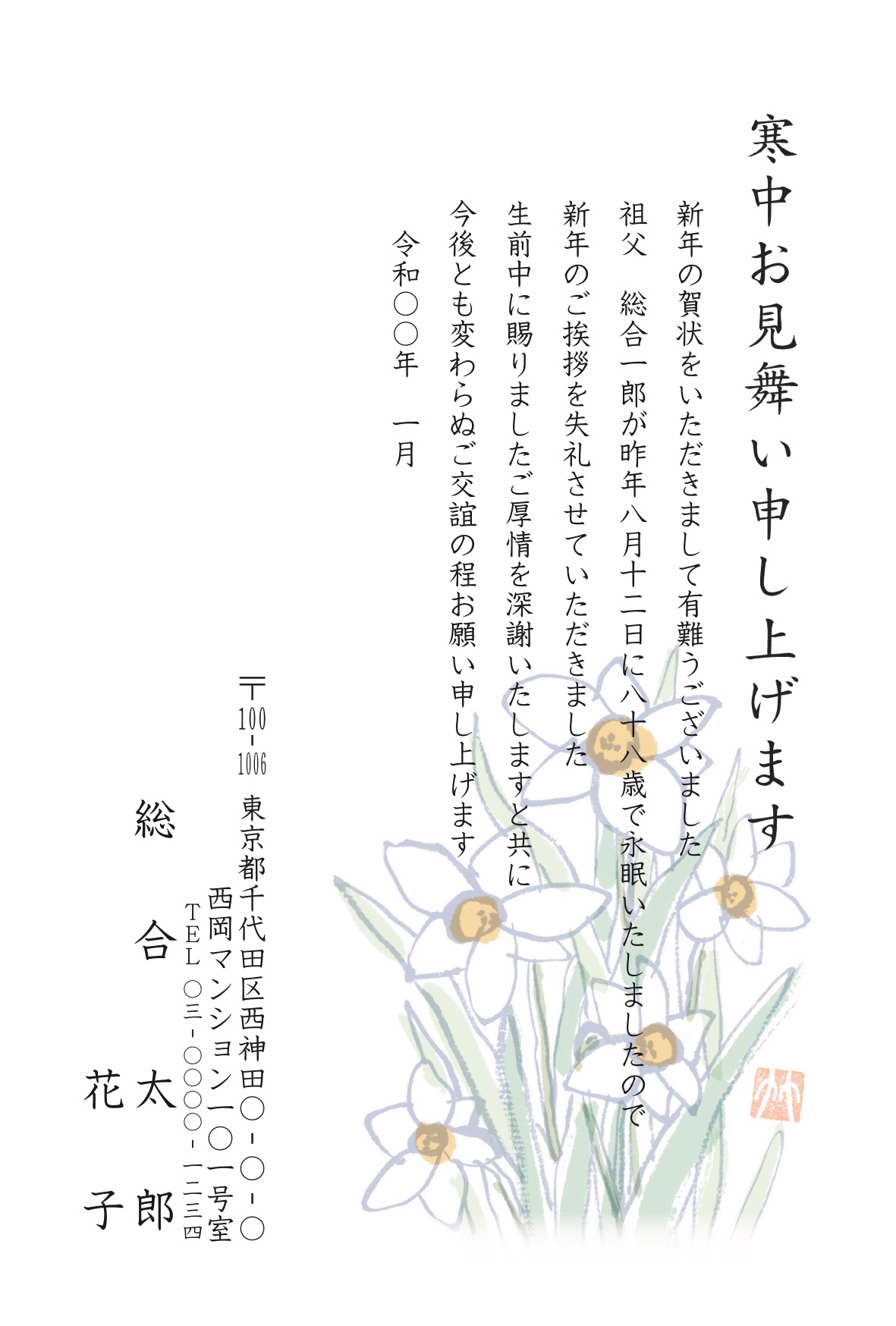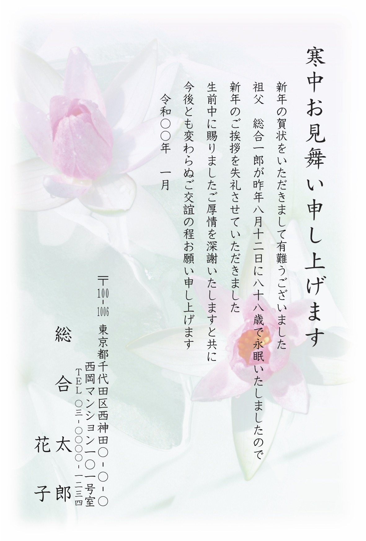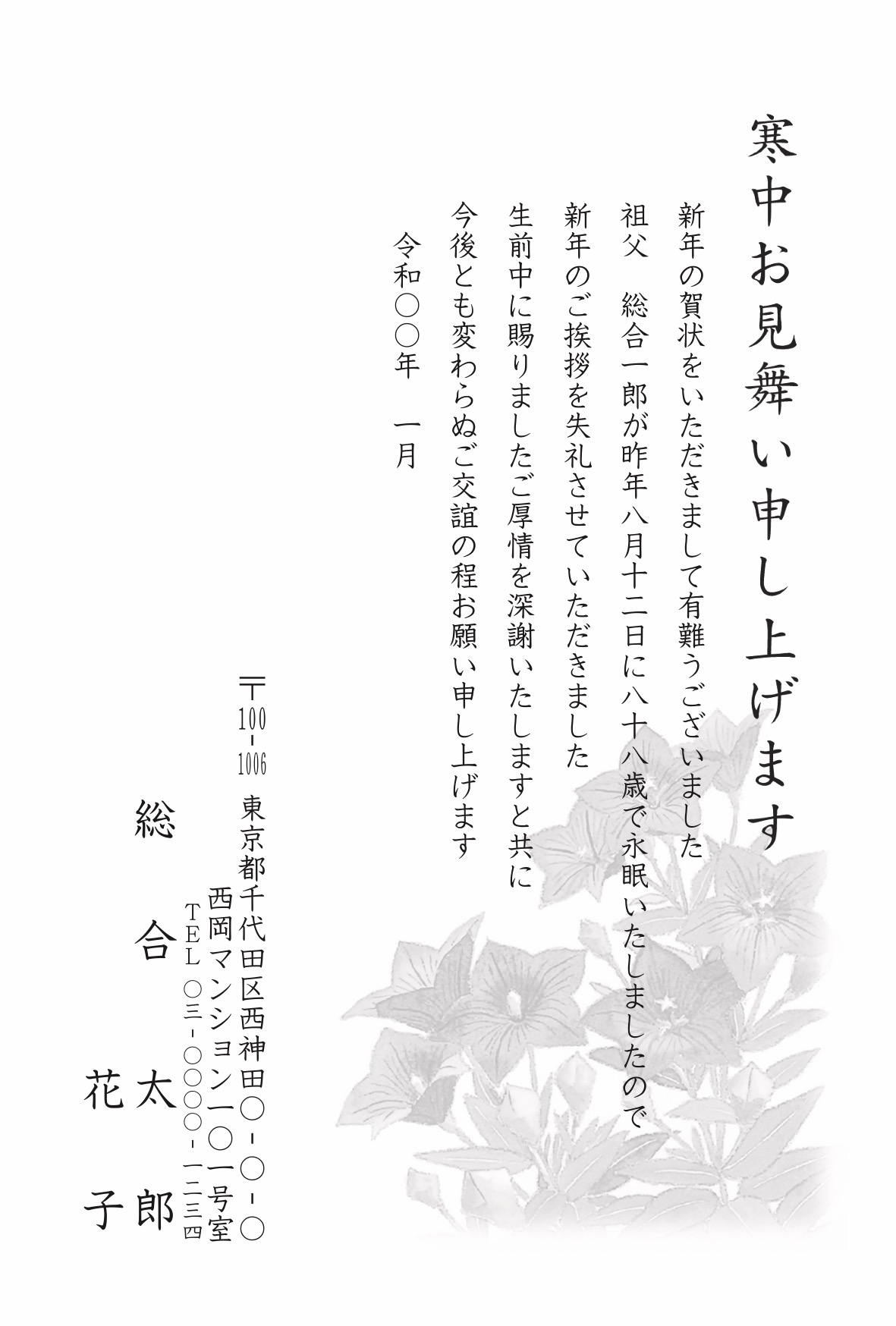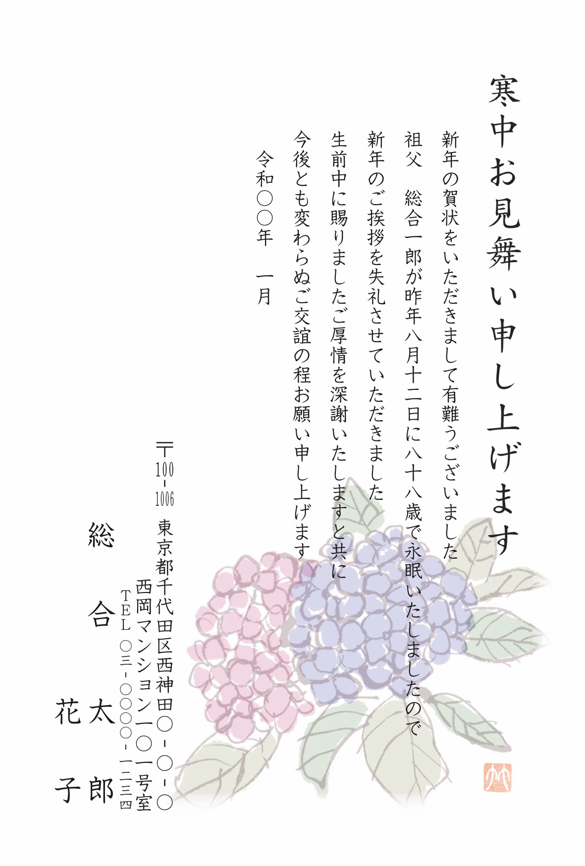 いただいた年賀状に対するお礼と、喪中のために欠礼したことを伝える寒中見舞いです。