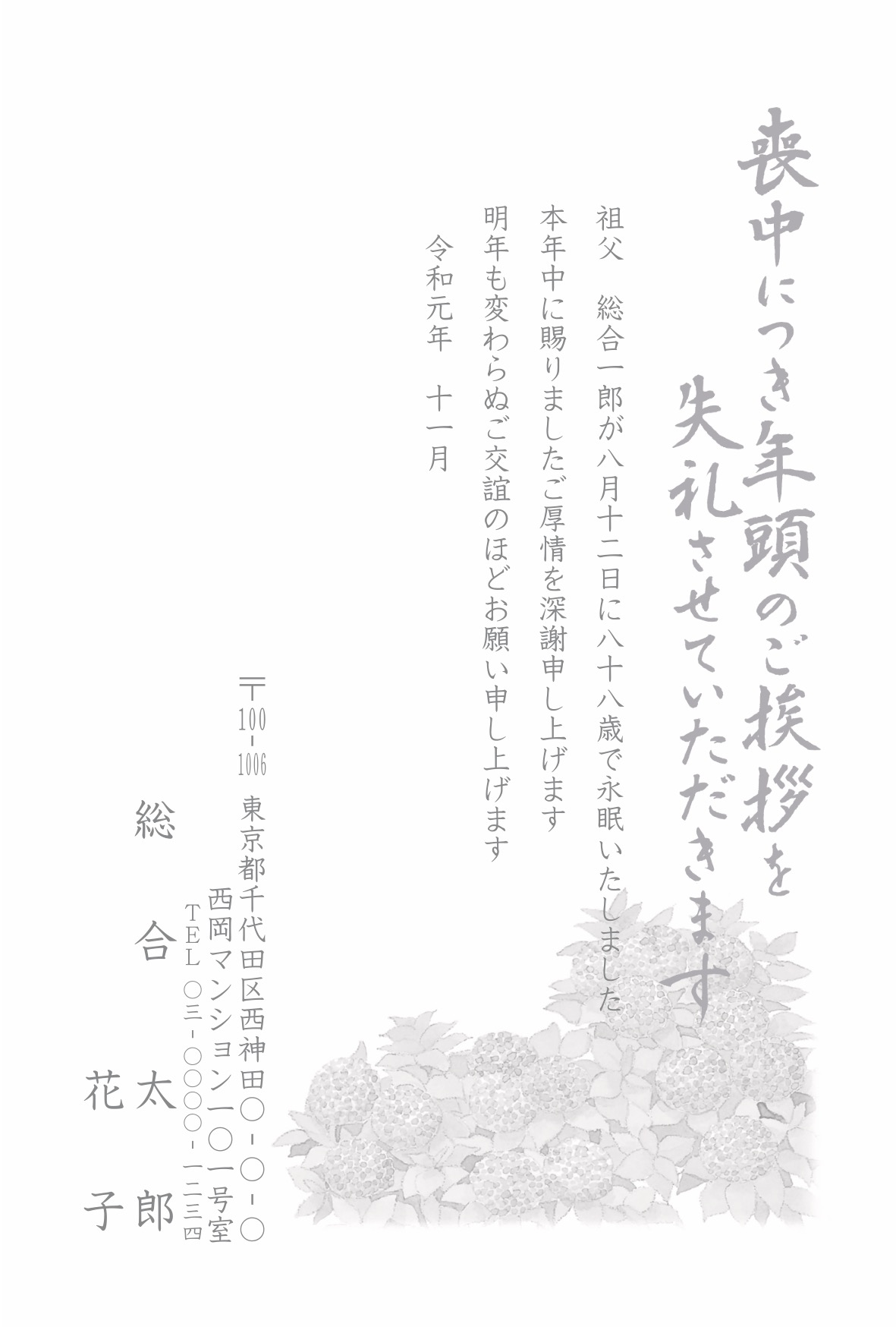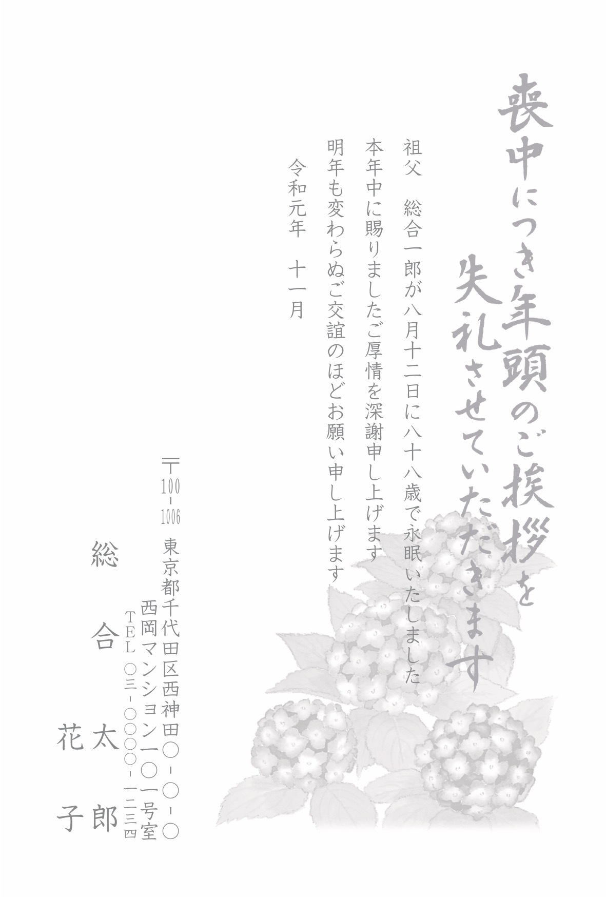 文字はグレー色で印刷します。 控えめな中にも、上品さを感じる喪中はがきです。