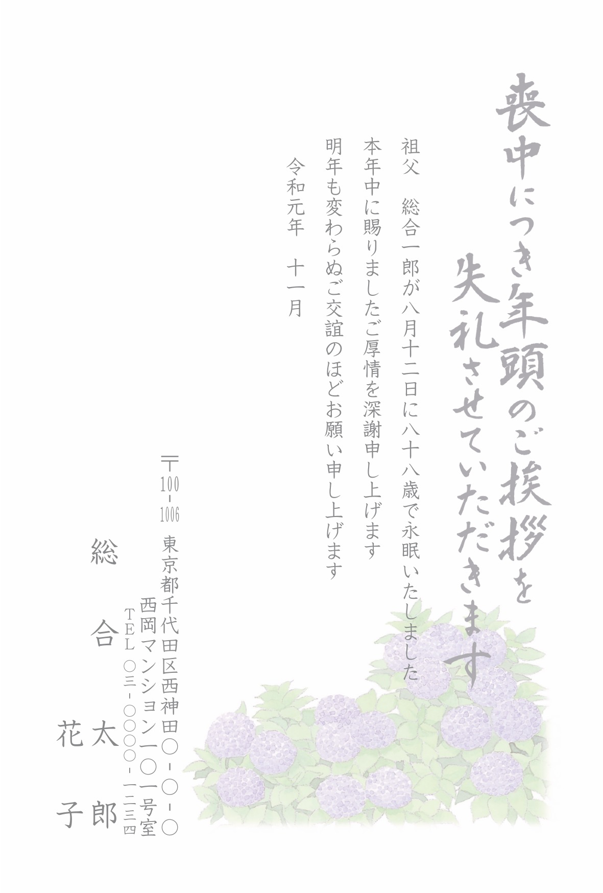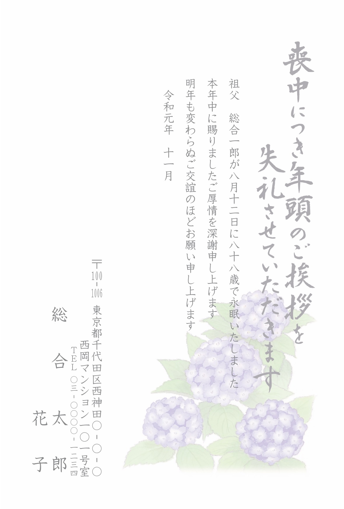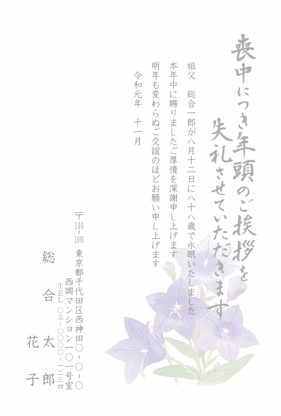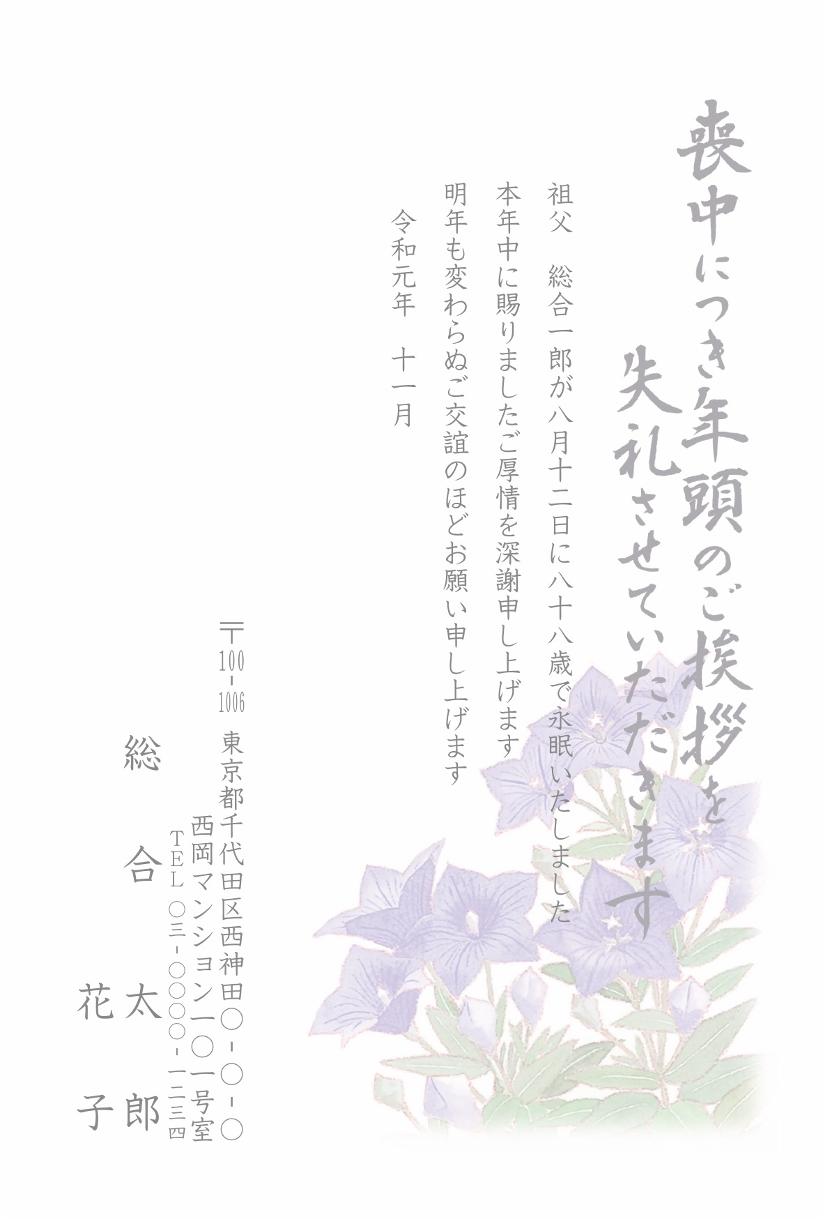 喪中はがき 薄墨タイプ(カラー印刷)