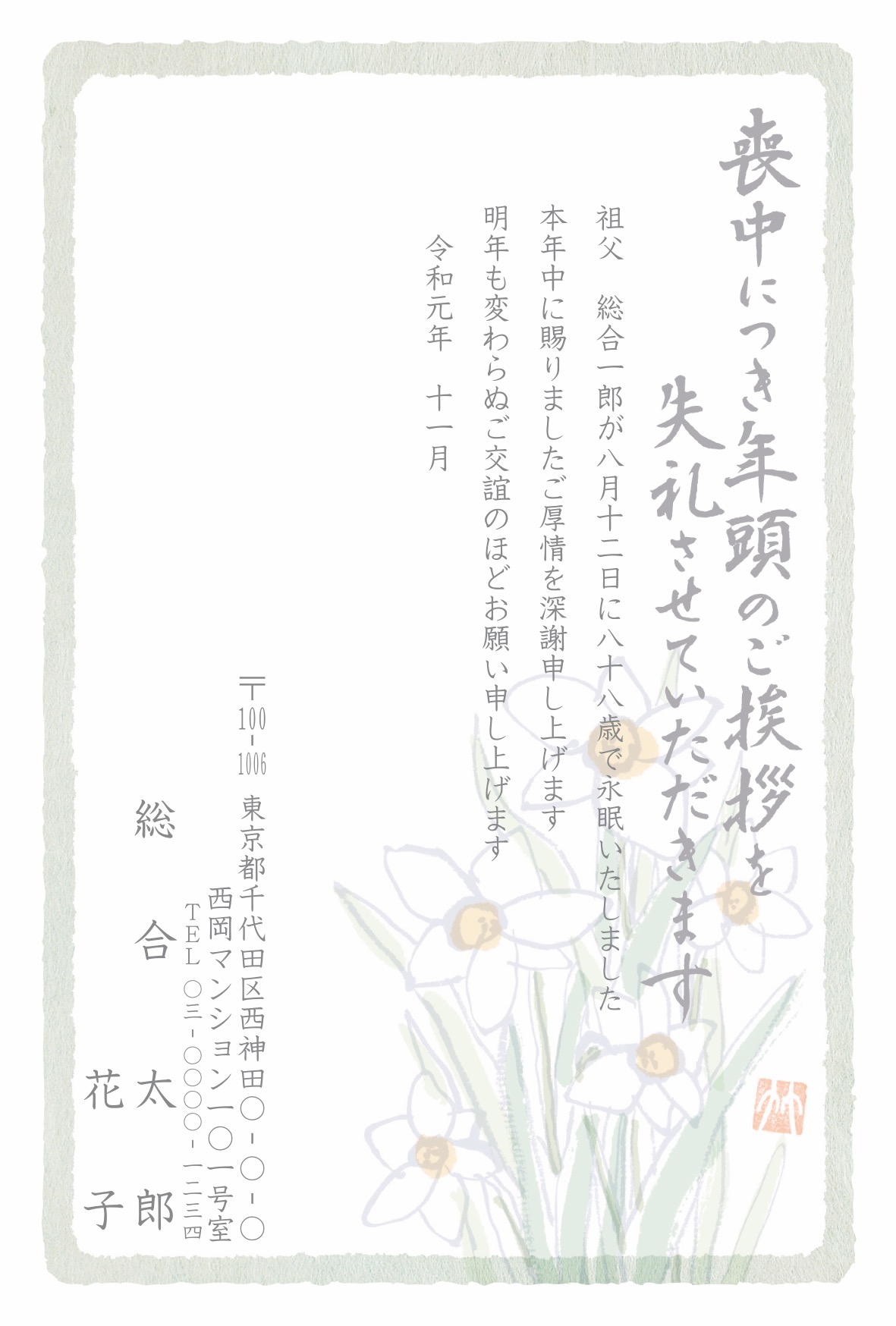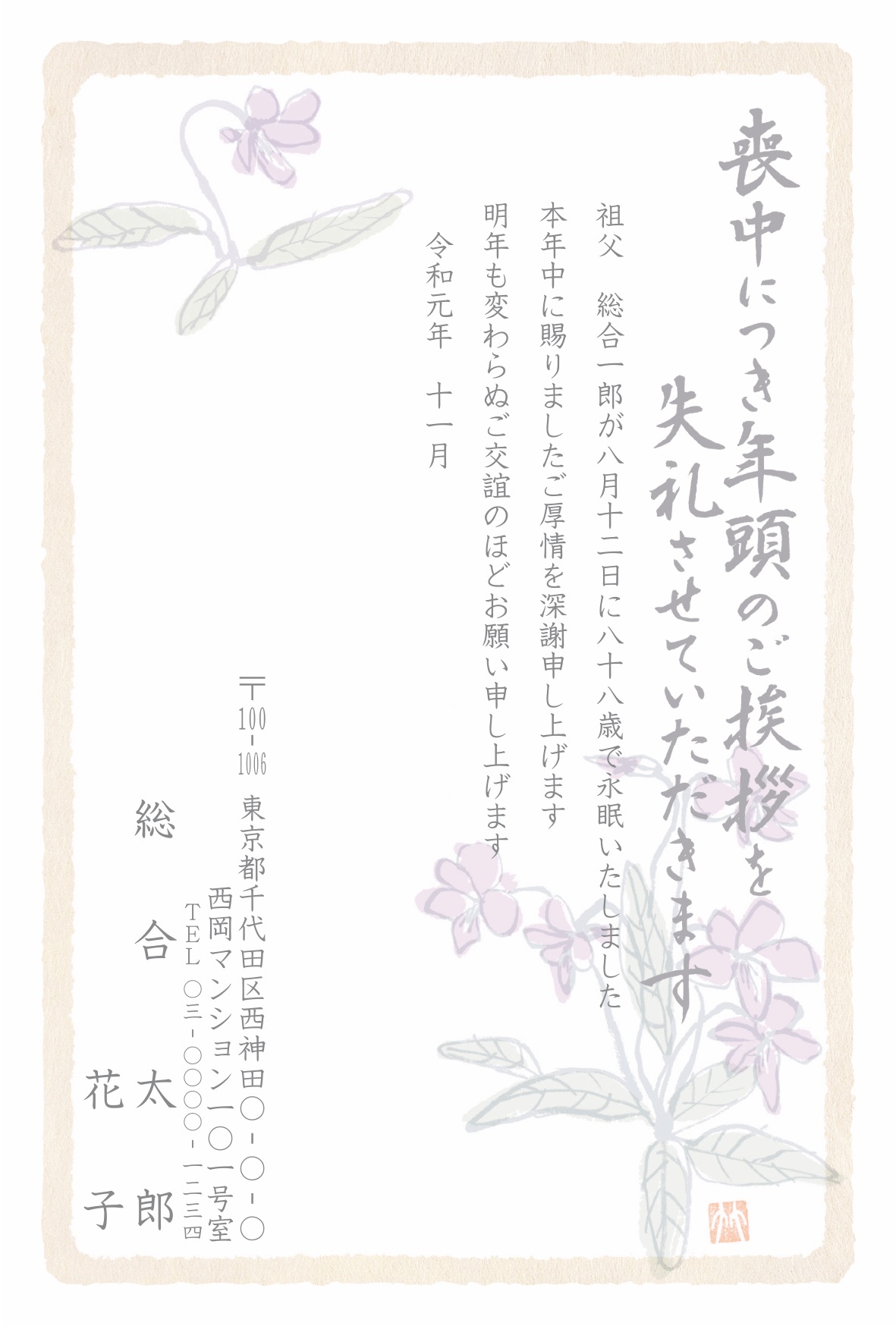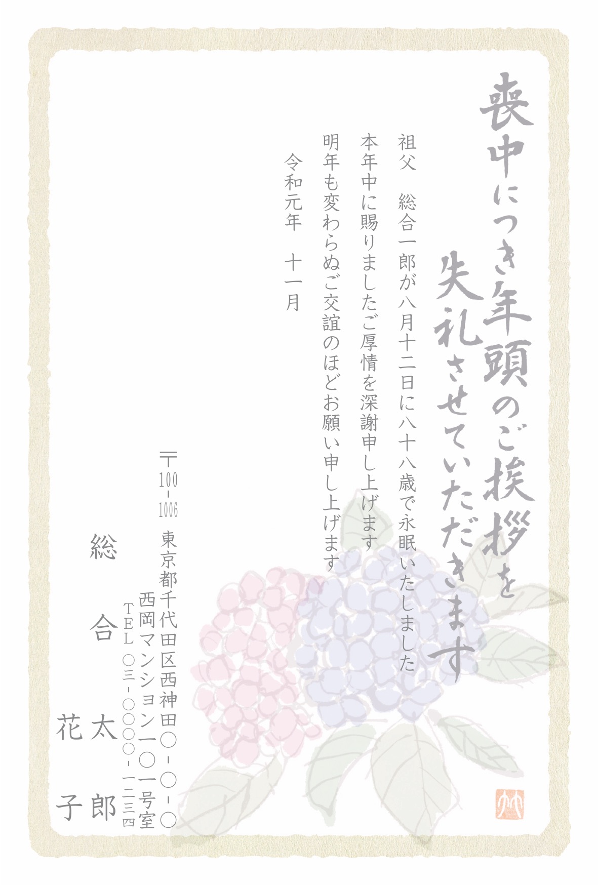 喪中はがき 薄墨タイプ(カラー印刷)