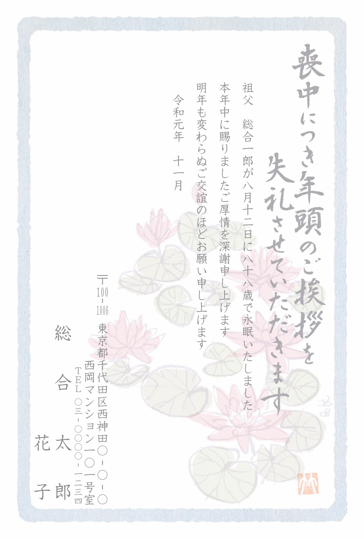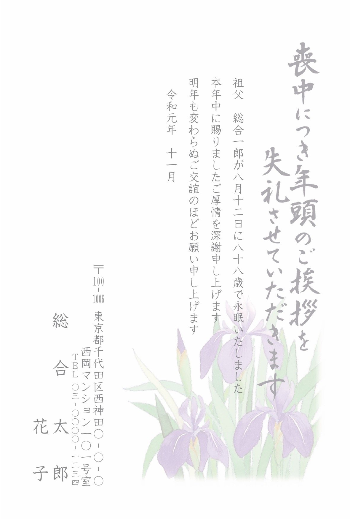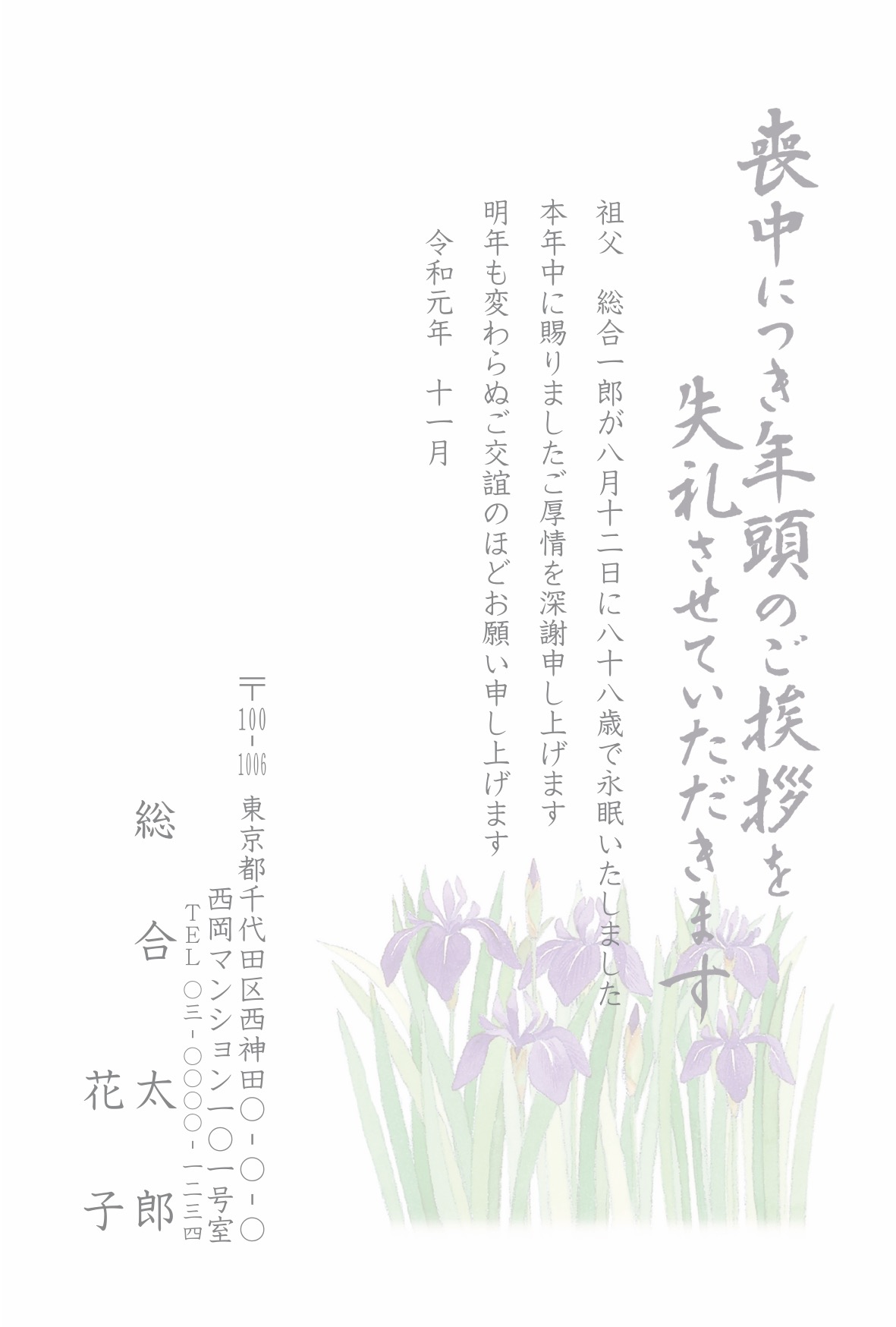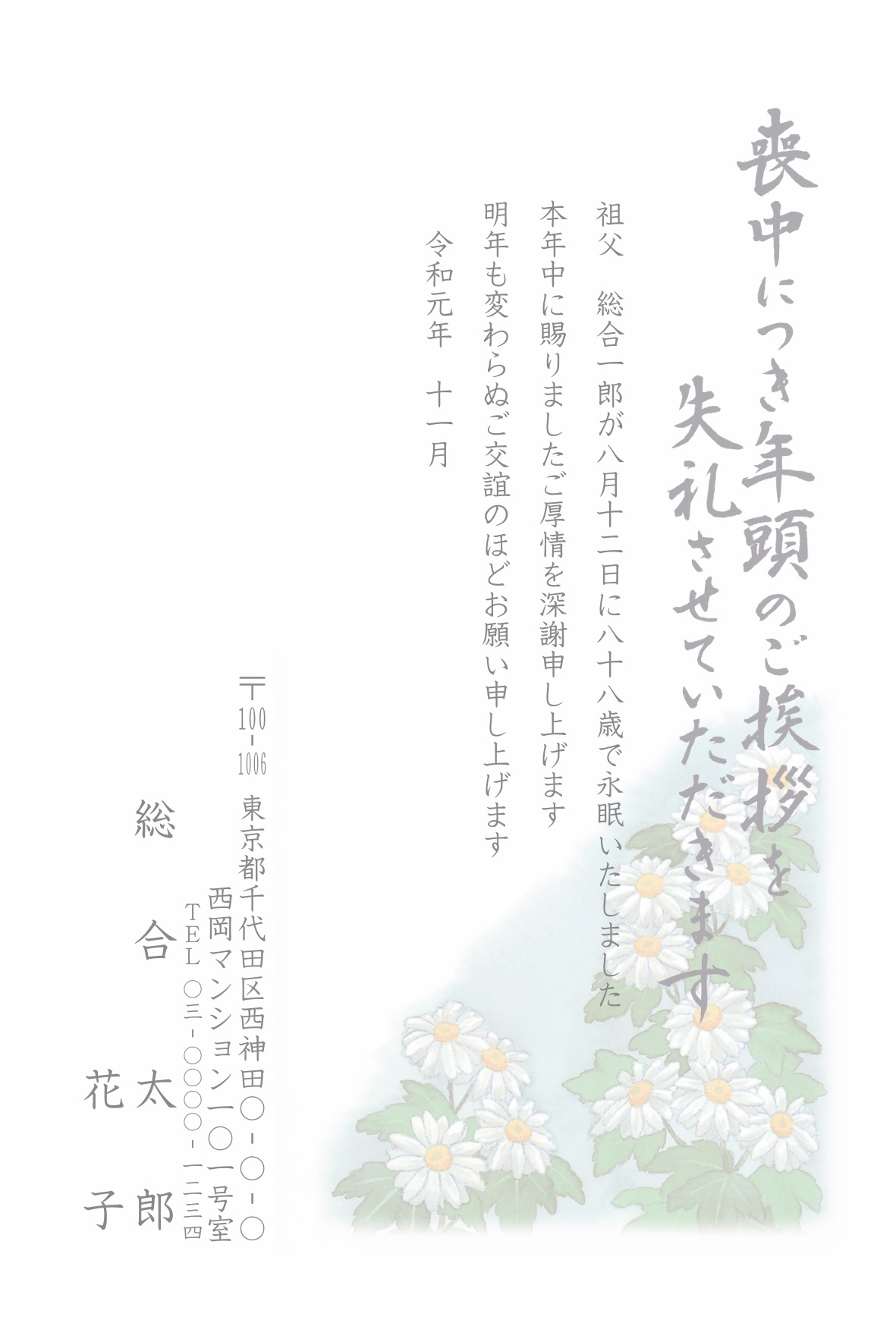 喪中はがき 薄墨タイプ(カラー印刷)
